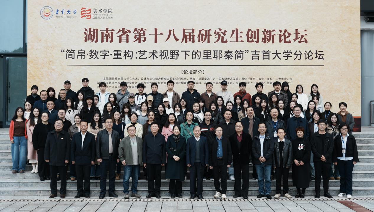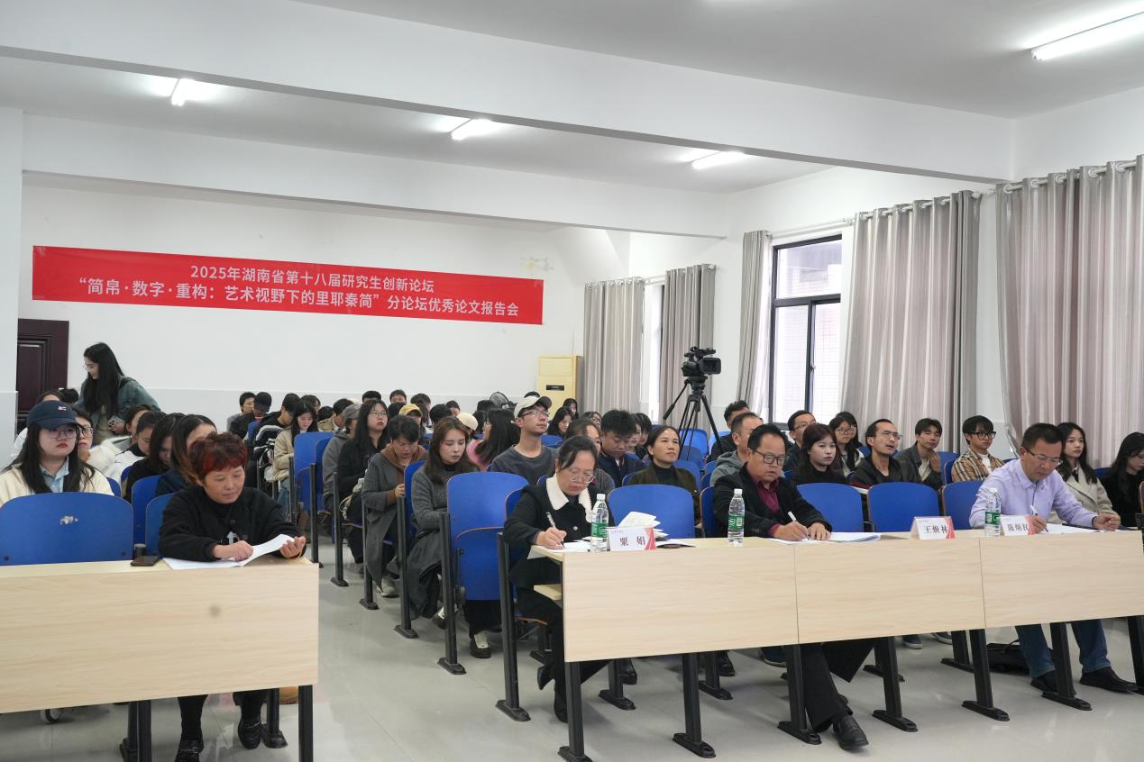 2025年11月5日-6日,由湖南省教育厅主办,我校承办湖南省第十八届研究生创新论坛“简帛·数字·重构:艺术视野下的里耶秦简”分论坛在美术学院顺利举行。我校党委书记廖志坤,湖南大学岳麓书院王勇教授、“里耶秦简研究院”首席专家王焕林等领导、专家出席分论坛开幕式。湖南师范大学、湖南工商大学、江苏师范大学及吉首大学等省内外多所高校的800余名师生代表参加论坛,论坛开幕式由我校美术学院硕士研究生导师李嘉主持。