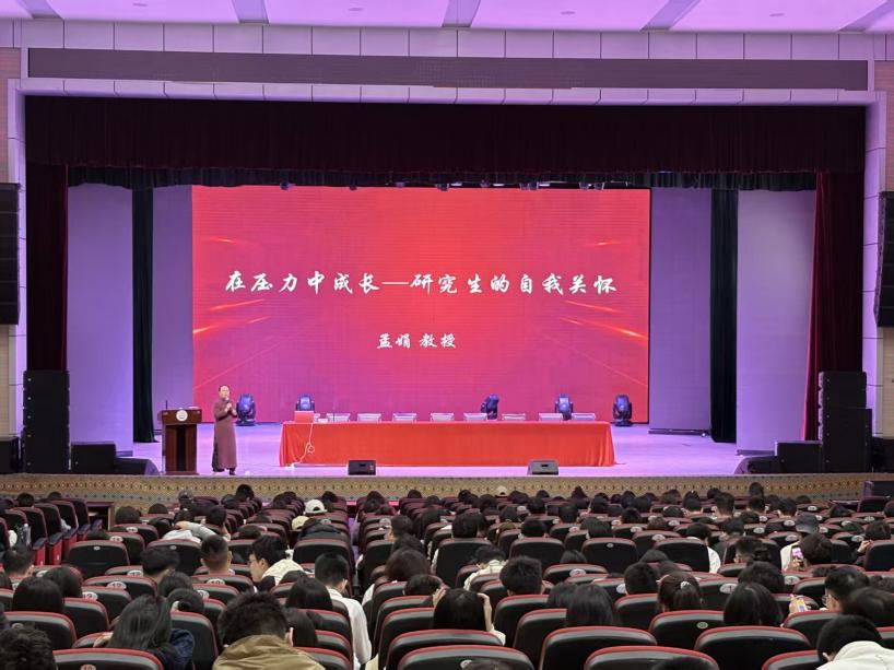 随后,研究生院宋佳骏老师围绕“研究生培养流程与管理制度”进行专题解读。他从培养方案设计、课程学习要求、科研实践规划到毕业答辩规范等关键环节进行了细致解读,并深入阐释了学校研究生教育的各项管理制度,为新生清晰描绘了研究生阶段的学习与科研路径,提供了科学规划学业的权威指导。在心理健康教育环节,师范学院孟娟教授以“在压力下成长——研究生的自我关怀”为题作了专题讲座,结合研究生阶段常见的学业科研压力与生活适应挑战,分享了专业的心理调适策略与实用的自我关怀技巧。紧接着,图书馆卢明芳老师开展了图书馆入馆教育,重点讲解了中外文数据库的检索与利用核心技巧,助力新生熟练掌握学术资源获取能力。最后,学校学工部段武城部长从校园、人身、财产、网络等多个维度进行了安全教育,结合典型案例,深刻阐述了安全防范的重要性,系统讲解了安全防范知识与突发事件应对措施,旨在切实增强新生的安全意识与自我保护能力。